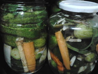 Lasam castravetii in apa clocotita pana se schimba un pic la culoare.
